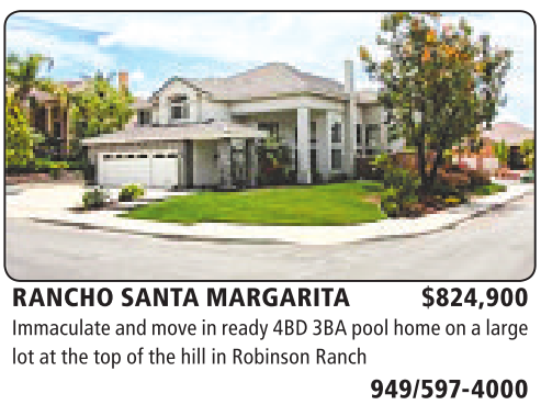 RANCHO SANTA MARGARITA $824,900 Immaculate andmove in ready4BD 3BApoolhome on alarge lotatthe topofthe hill in Robinson Ranch 949/597-4000