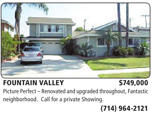 FOUNTAIN VALLEY $749,000 PicturePerfect –Renovatedand upgraded throughout,Fantastic neighborhood. Call foraprivateShowing.