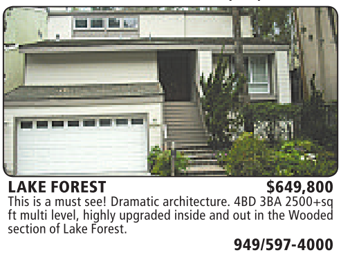 LAKE FOREST $649,800 This is amust see! Dramatic architecture. 4BD 3BA 2500+sq ft multi level, highly upgraded inside and out inthe Wooded sectionofLakeForest.