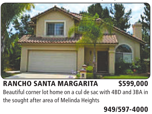 RANCHO SANTA MARGARITA $599,000 Beautifulcorner lothome on acul de sacwith4BD and3BA in thesoughtafter area of MelindaHeights 949/597-4000