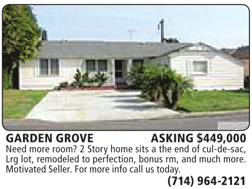 GARDEN GROVE ASKING $449,000 Need more room? 2Story home sits athe end ofcul-de-sac,