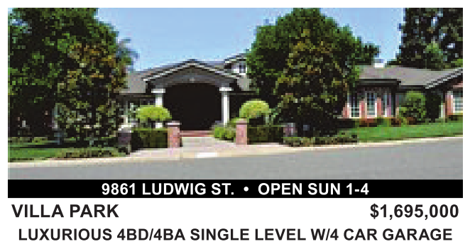 9861 LUDWIG ST. • OPEN SUN 1-4 VILLA PARK $1,695,000 LUXURIOUS 4BD/4BA SINGLE LEVEL W/4 CAR GARAGE