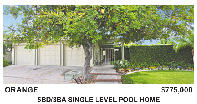 ORANGE $775,000 5BD/3BA SINGLE LEVEL POOL HOME