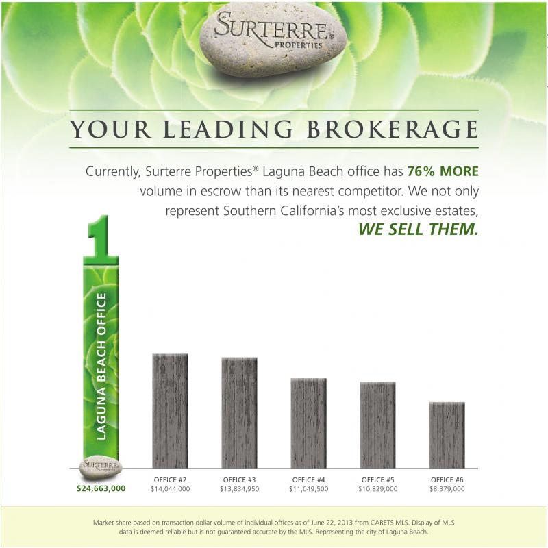 Market share based on transaction dollar volume of individual offices as of June 22, 2013 from CARETS MLS. Display of MLS data is deemed reliable but is not guaranteed accurate by the MLS. Representing the city of Laguna Beach.