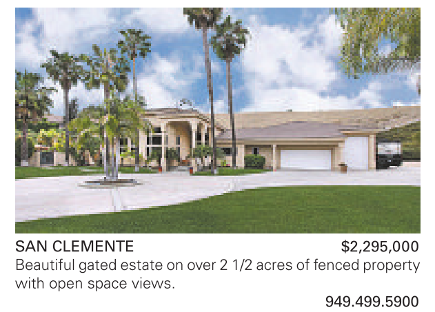 SAN CLEMENTE $2,295,000 Beautiful gated estate on over21/2 acres of fenced property with open space views.