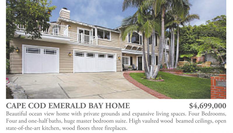 CAPE COD EMERALD BAY HOME $4,699,000 Beautiful ocean view home with private grounds and expansive living spaces. Four Bedrooms,