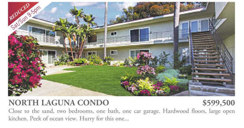 NORTH LAGUNA CONDO $599,500 Close to the sand, two bedrooms, one bath, one car garage. Hardwood floors, large open