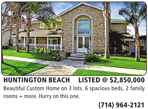 HUNTINGTON BEACH LISTED @ $2,850,000 Beautiful Custom Home on 3lots. 6spacious beds, 2family rooms+more.Hurry on this one.