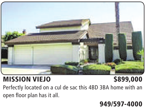 MISSION VIEJO $899,000 Perfectly located on acul de sac this 4BD 3BA home with an openfloorplanhas it all.