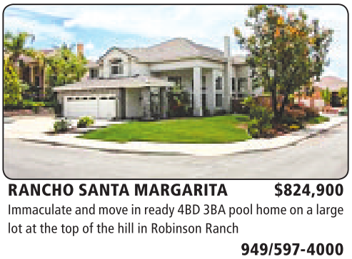 RANCHO SANTA MARGARITA $824,900 Immaculate andmove in ready4BD 3BApoolhome on alarge lotatthe topofthe hill in Robinson Ranch 949/597-4000