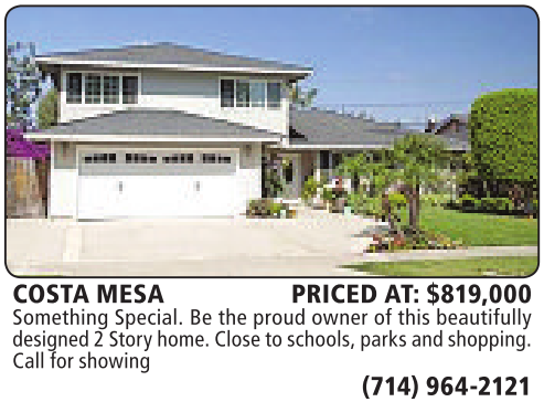 COSTA MESA PRICED AT: $819,000 Something Special. Be the proud owner of this beautifully designed2Story home. Close to schools,parks andshopping. Call forshowing (714) 964-2121