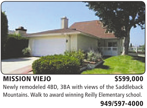 MISSION VIEJO $599,000 Newly remodeled 4BD, 3BA with views of the Saddleback Mountains.Walk to award winningReillyElementary school.