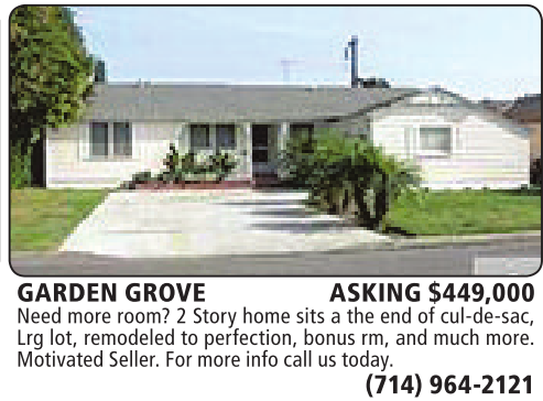 GARDEN GROVE ASKING $449,000 Need more room? 2Story home sits athe end ofcul-de-sac,