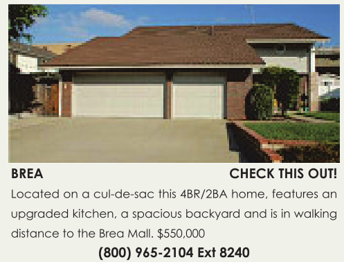 distance to the Brea Mall. $550,000 (800) 965-2104 Ext 8240