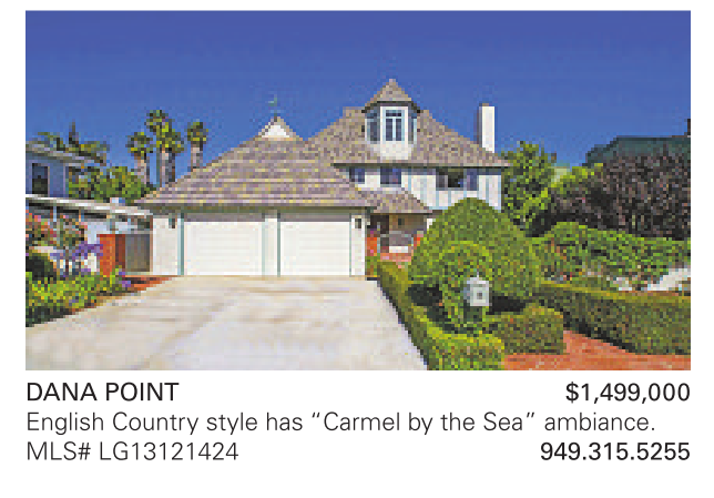 DANA POINT $1,499,000 English Country style has “Carmel by the Sea” ambiance. MLS# LG13121424 949.315.5255