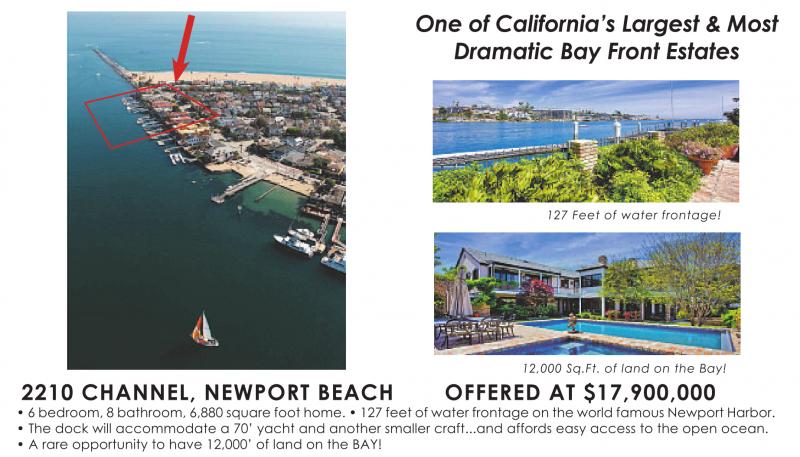 2210 CHANNEL, NEWPORT BEACH OFFERED AT $17,900,000