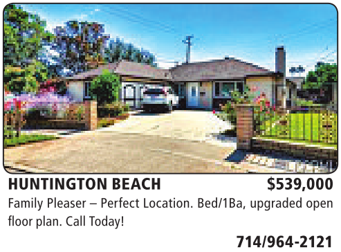 HUNTINGTON BEACH $539,000 Family Pleaser –Perfect Location. Bed/1Ba, upgraded open floor plan. Call Today!
