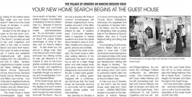 For more information, please visit www.RanchoMissionViejo. com or call a Community Representative at the Guest House at (949) 768-1882.