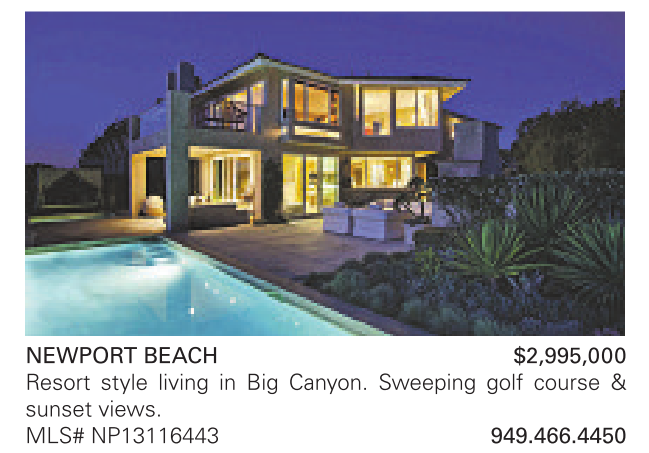 NEWPORT BEACH $2,995,000 Resort style living in Big Canyon. Sweeping golf course & sunset views. MLS# NP13116443 949.466.4450