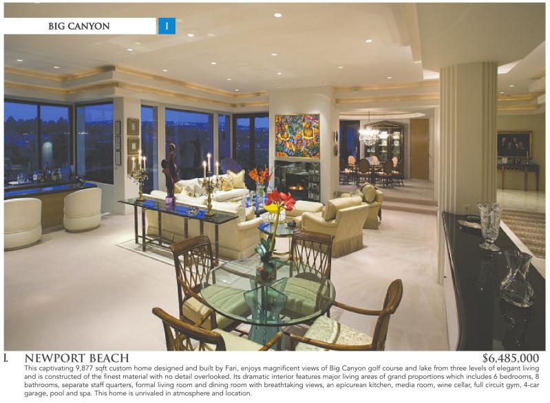 This captivating 9,877 sqft custom home designed and built by Fari, enjoys magnificent views of Big Canyon golf course and lake from three levels of elegant living