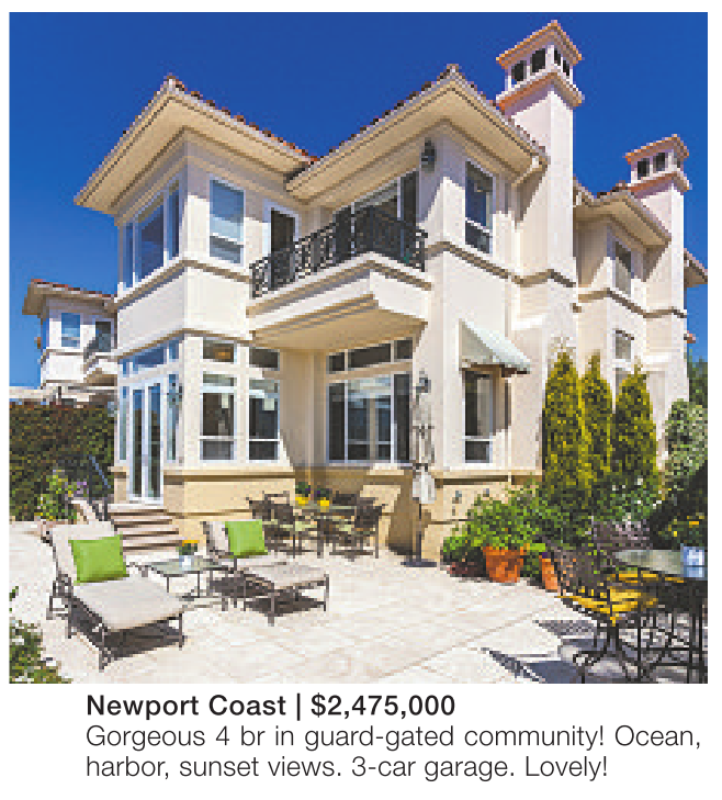 Newport Coast | $2,475,000 Gorgeous 4 br in guard-gated community! Ocean, harbor, sunset views. 3-car garage. Lovely!