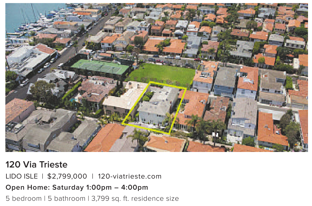 LIDO ISLE | $2,799,000 | 120-viatrieste.com Open Home: Saturday 1:00pm – 4:00pm 5 bedroom | 5 bathroom | 3,799 sq. ft. residence size