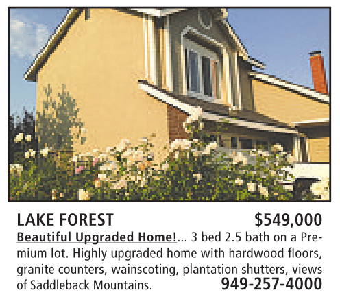 lot. Highly upgraded home with hardwood floors, granite counters, wainscoting, plantation shutters, views of Saddleback Mountains. 949-257-4000