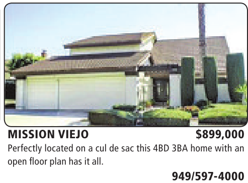 MISSION VIEJO $899,000 Perfectly located on acul de sac this 4BD 3BA home with an openfloorplanhas it all.
