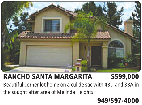 RANCHO SANTA MARGARITA $599,000 Beautifulcorner lothome on acul de sacwith4BD and3BA in thesoughtafter area of MelindaHeights 949/597-4000