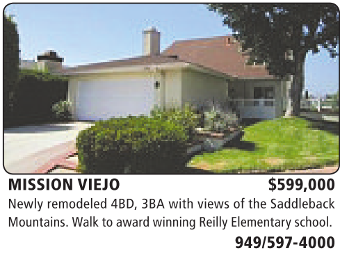MISSION VIEJO $599,000 Newly remodeled 4BD, 3BA with views of the Saddleback Mountains.Walk to award winningReillyElementary school.