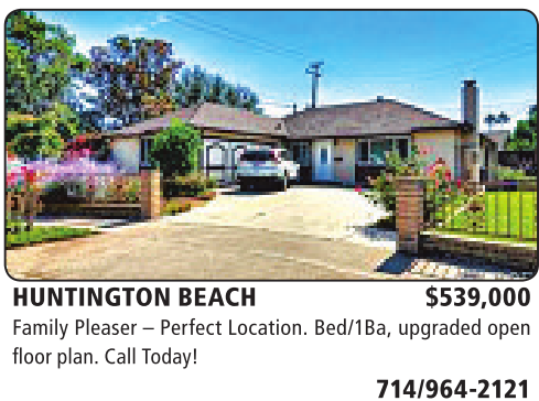 HUNTINGTON BEACH $539,000 Family Pleaser –Perfect Location. Bed/1Ba, upgraded open floor plan. Call Today!