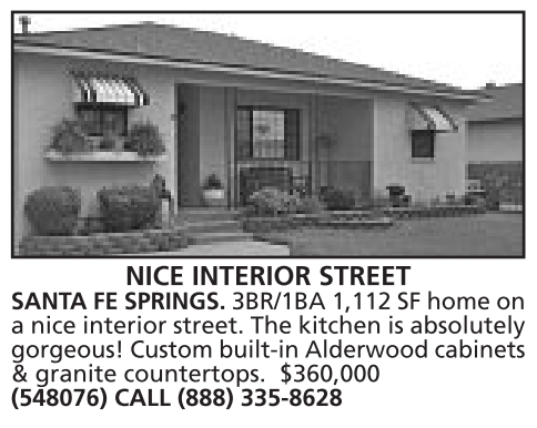 NICE INTERIOR STREET SANTAFESPRINGS. 3BR/1BA 1,112 SF home on