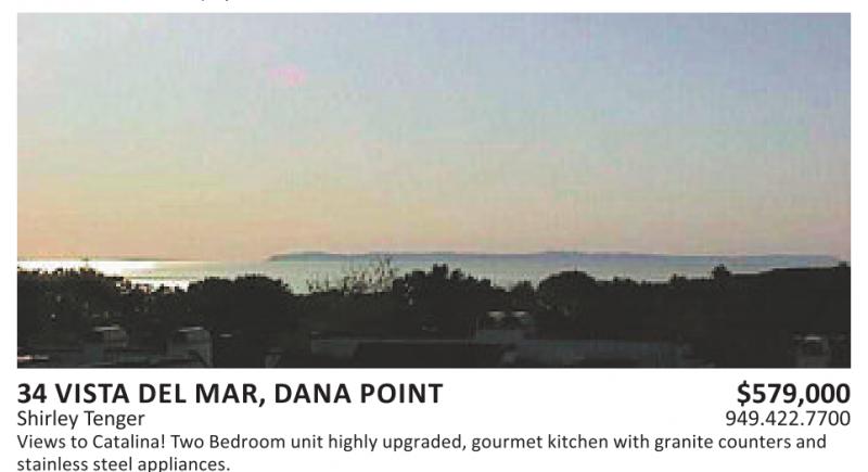 34 VISTA DEL MAR, DANA POINT $579,000 Shirley Tenger 949.422.7700