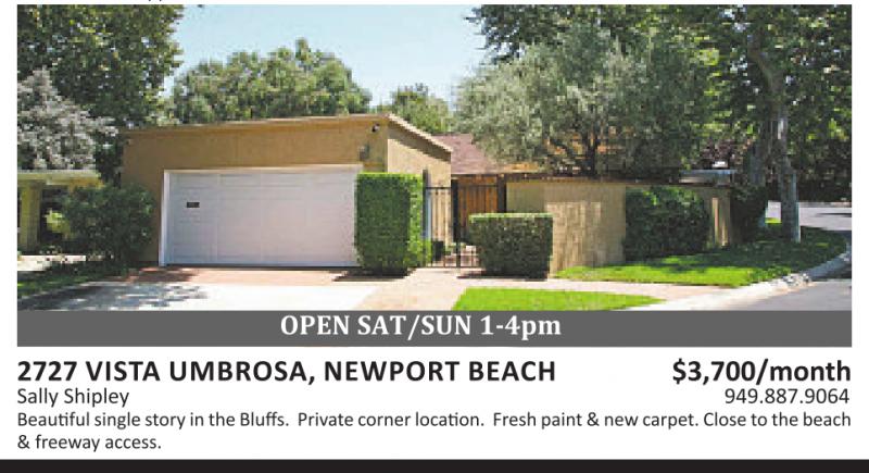 2727 VISTA UMBROSA, NEWPORT BEACH $3,700/month Sally Shipley 949.887.9064