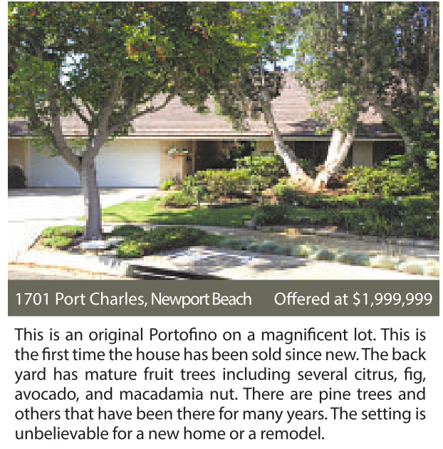 This is an original Portofino on a magnificent lot. This is the first time the house has been sold sincenew.The back yard has mature fruit trees including several citrus, fig, avocado, and macadamia nut. There are pine trees and others thathavebeen therefor manyyears.The setting is unbelievable foranew home or aremodel.