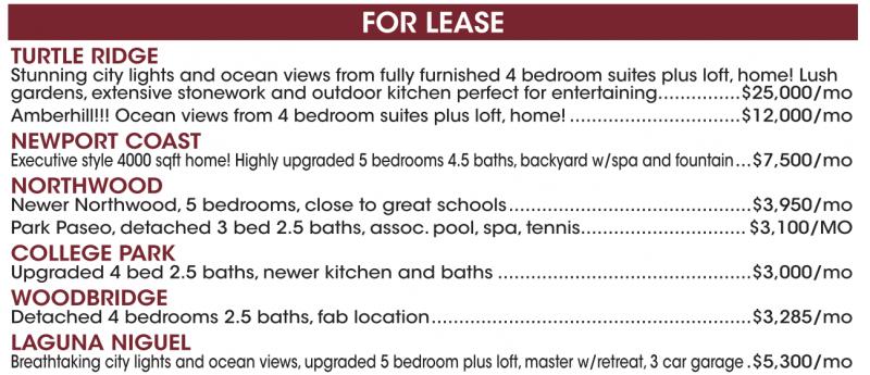 Park Paseo,detached 3 bed 2.5 baths,assoc. pool, spa, tennis.............................. $3,100/MO COLLEGE PARK Upgraded 4 bed 2.5 baths,newer kitchen and baths ..............................................$3,000/mo