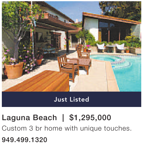 Laguna Beach | $1,295,000 Custom 3 br home with unique touches. 949.499.1320