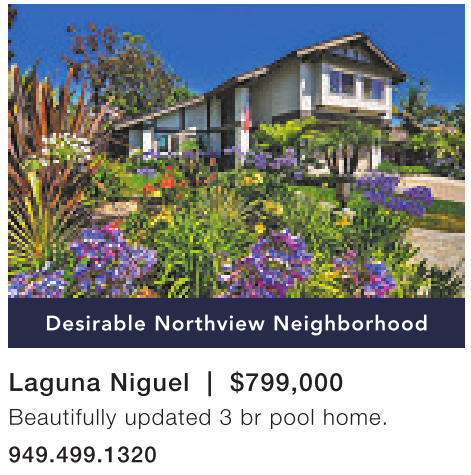Laguna Niguel | $799,000 Beautifully updated 3 br pool home. 949.499.1320