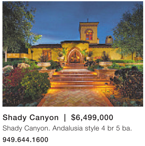 Shady Canyon. Andalusia style 4 br 5 ba.