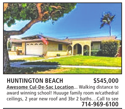award winning school! Huuuge family room w/cathedral ceilings, 2 year new roof and 3br 2 baths…Call to see 714-969-6100