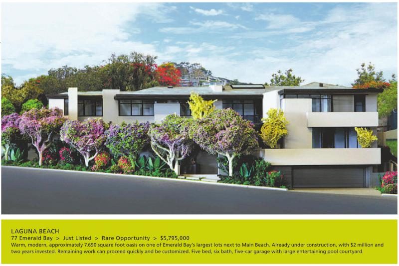 Warm, modern, approximately 7,690 square foot oasis on one of Emerald Bay’s largest lots next to Main Beach. Already under construction, with $2 million and two years invested. Remaining work can proceed quickly and be customized. Five bed, six bath, five-car garage with large entertaining pool courtyard.