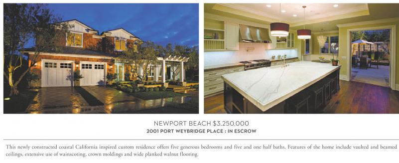 NEWPORT BEACH $3,250,000 2001 PORT WEYBRIDGE PLACE : IN ESCROW