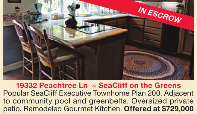 19332 Peachtree Ln ~ SeaCliff on the Greens Popular SeaCliff Executive Townhome Plan 200. Adjacent to community pool and greenbelts. Oversized private patio. Remodeled Gourmet Kitchen. Offered at $729,000