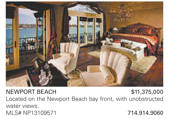 NEWPORT BEACH $11,375,000 Located on the Newport Beach bay front, with unobstructed water views. MLS# NP13109571 714.914.9060