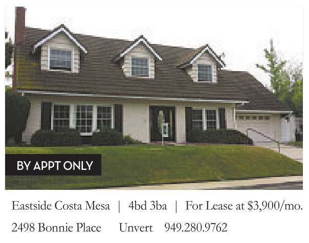 Eastside CostaMesa | 4bd 3ba | For Lease at $3,900/mo.