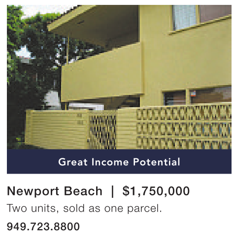 Newport Beach | $1,750,000 Two units, sold as one parcel. 949.723.8800