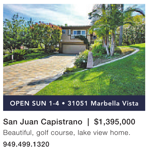 San Juan Capistrano | $1,395,000 Beautiful, golf course, lake view home. 949.499.1320