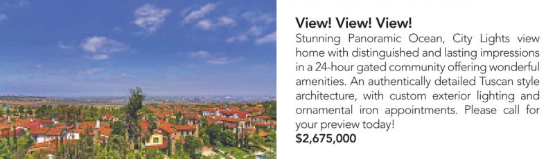 View! View! View! Stunning Panoramic Ocean, City Lights view home with distinguished and lasting impressions in a24-hour gated community offering wonderful amenities. An authentically detailed Tuscan style architecture, with custom exterior lighting and ornamental iron appointments. Please call for your preview today! $2,675,000