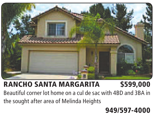 RANCHO SANTA MARGARITA $599,000 Beautifulcorner lothome on acul de sacwith4BD and3BA in thesoughtafter area of MelindaHeights 949/597-4000