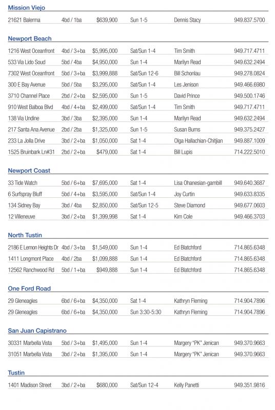 29 Gleneagles 6bd /6+ba $4,350,000 Sat 1-4 Kathryn Fleming 714.904.7896